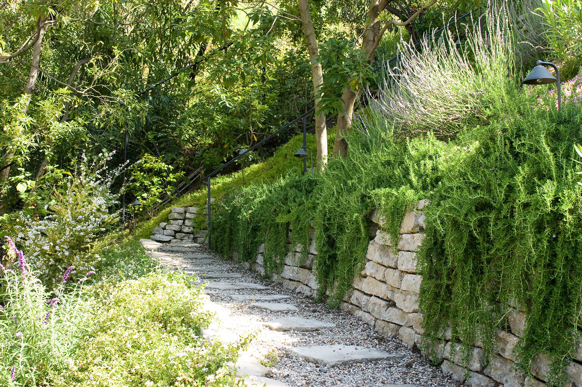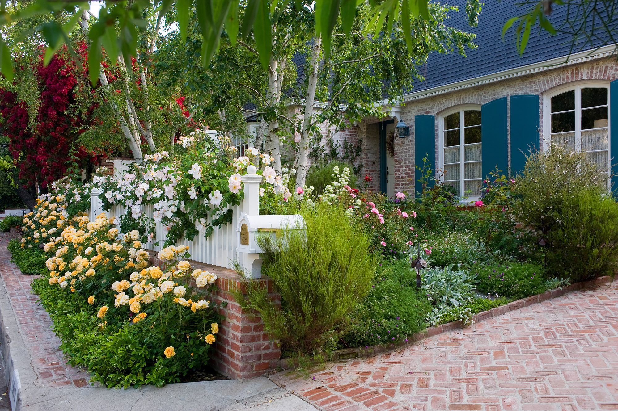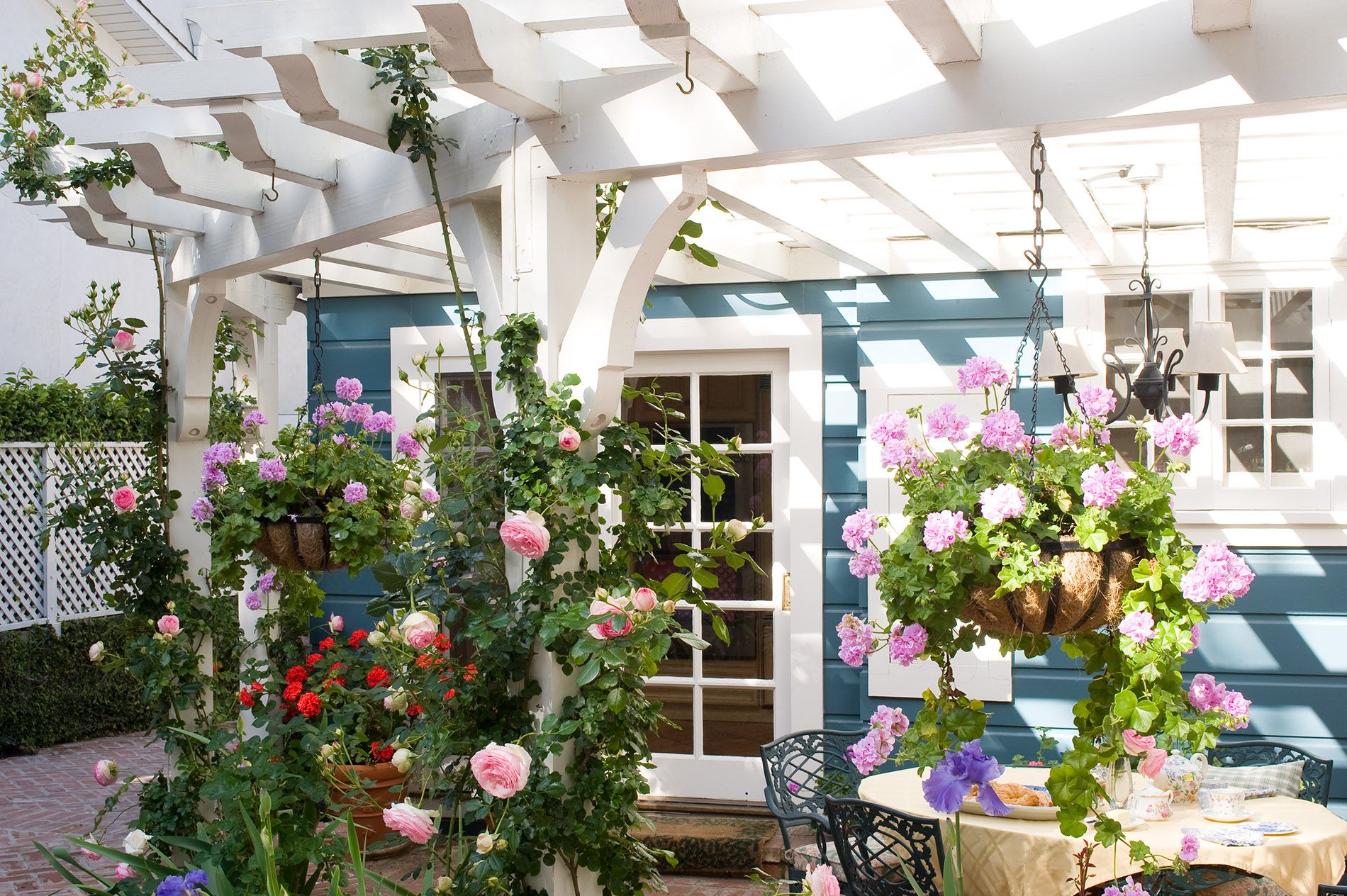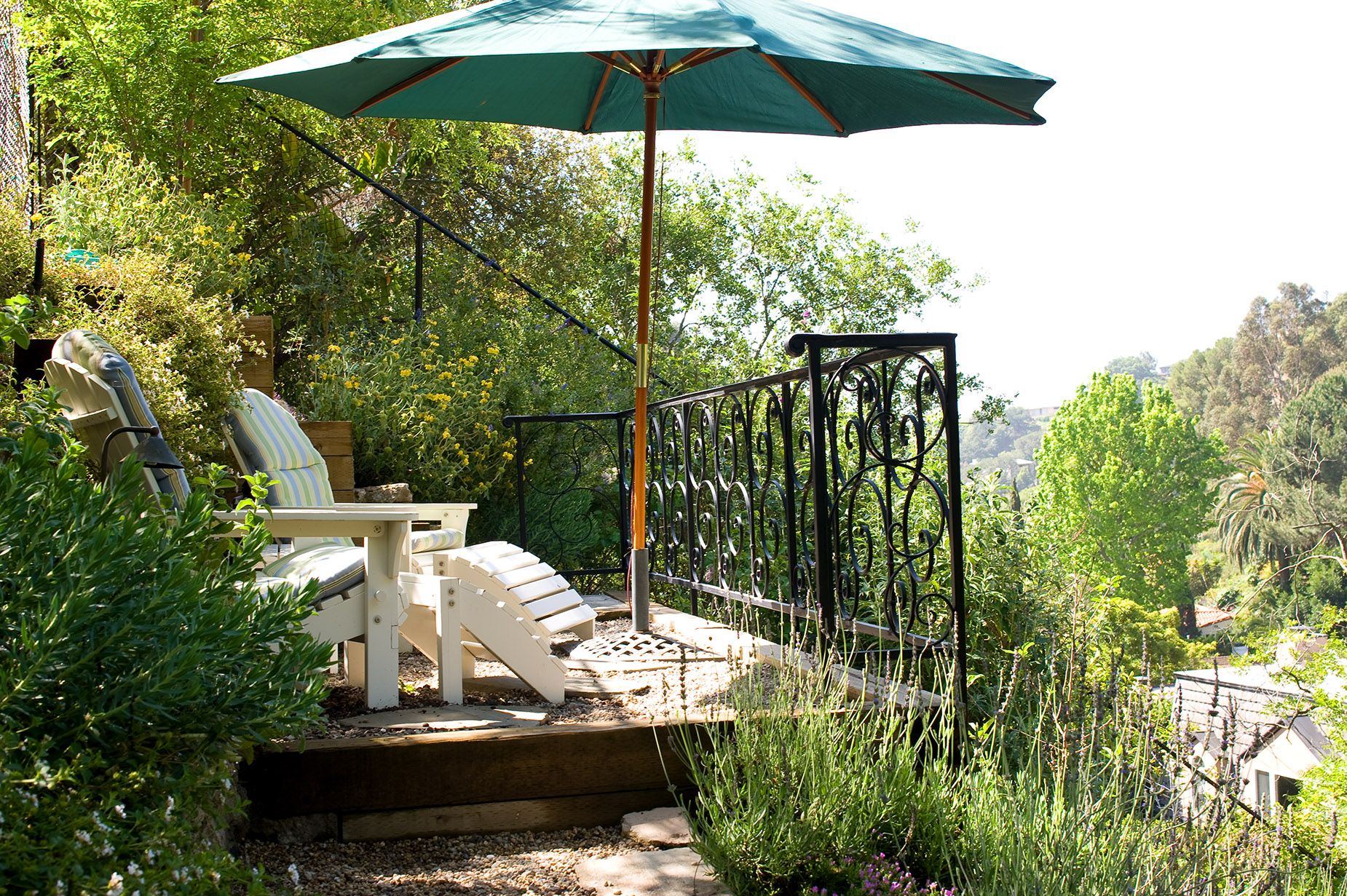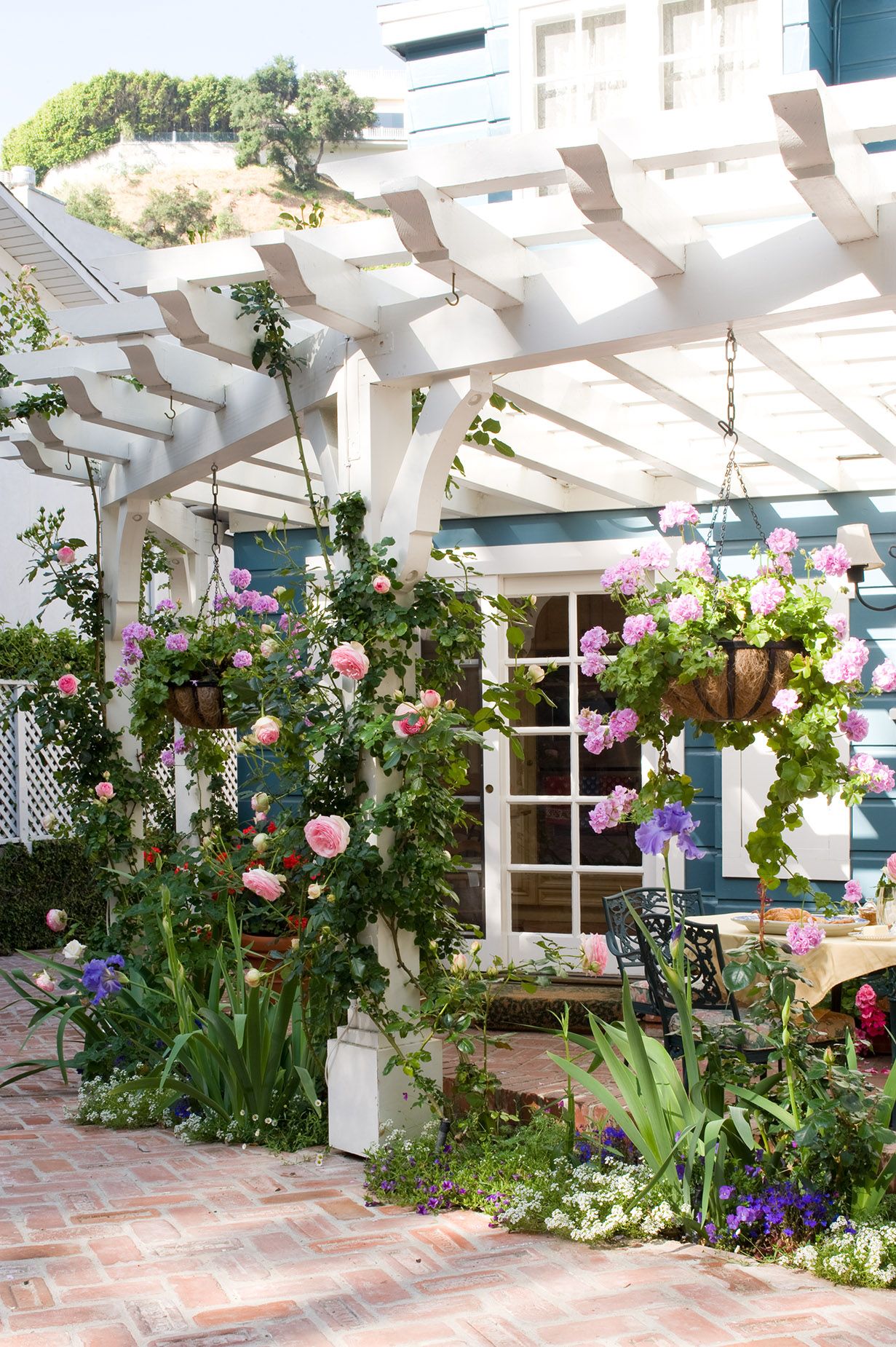 Modern and romantic garden with greenery and flowers in Beverly Hills