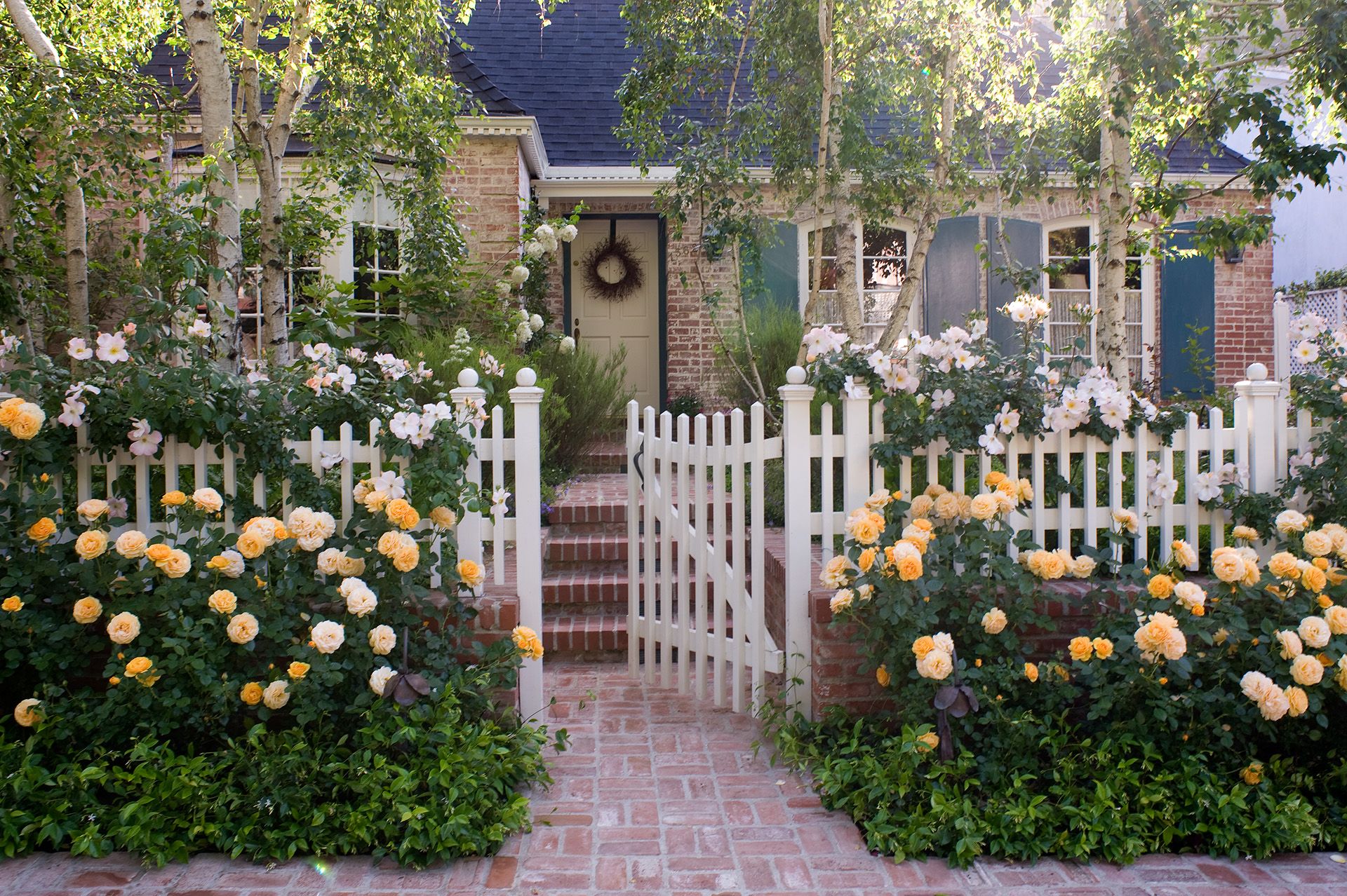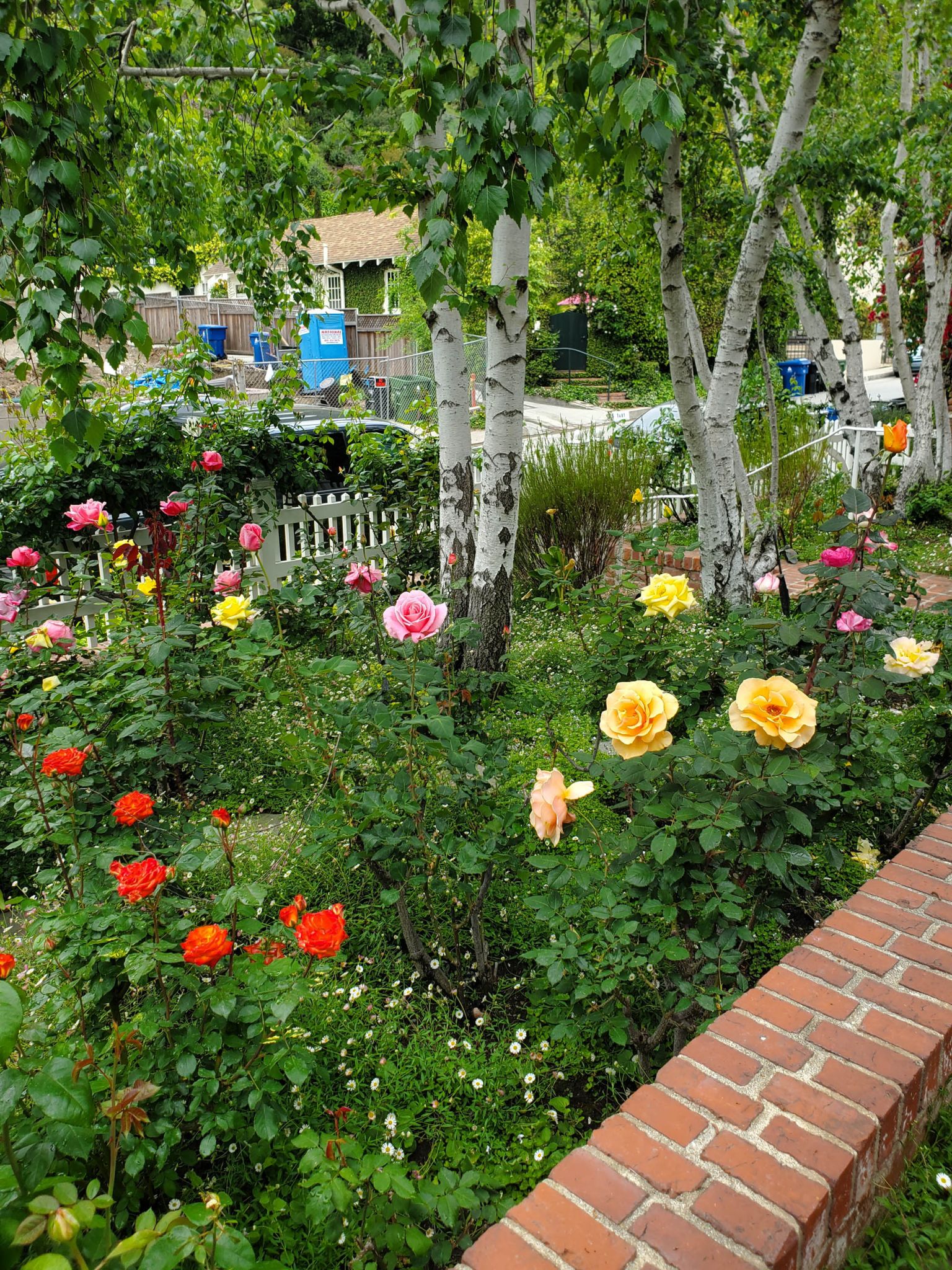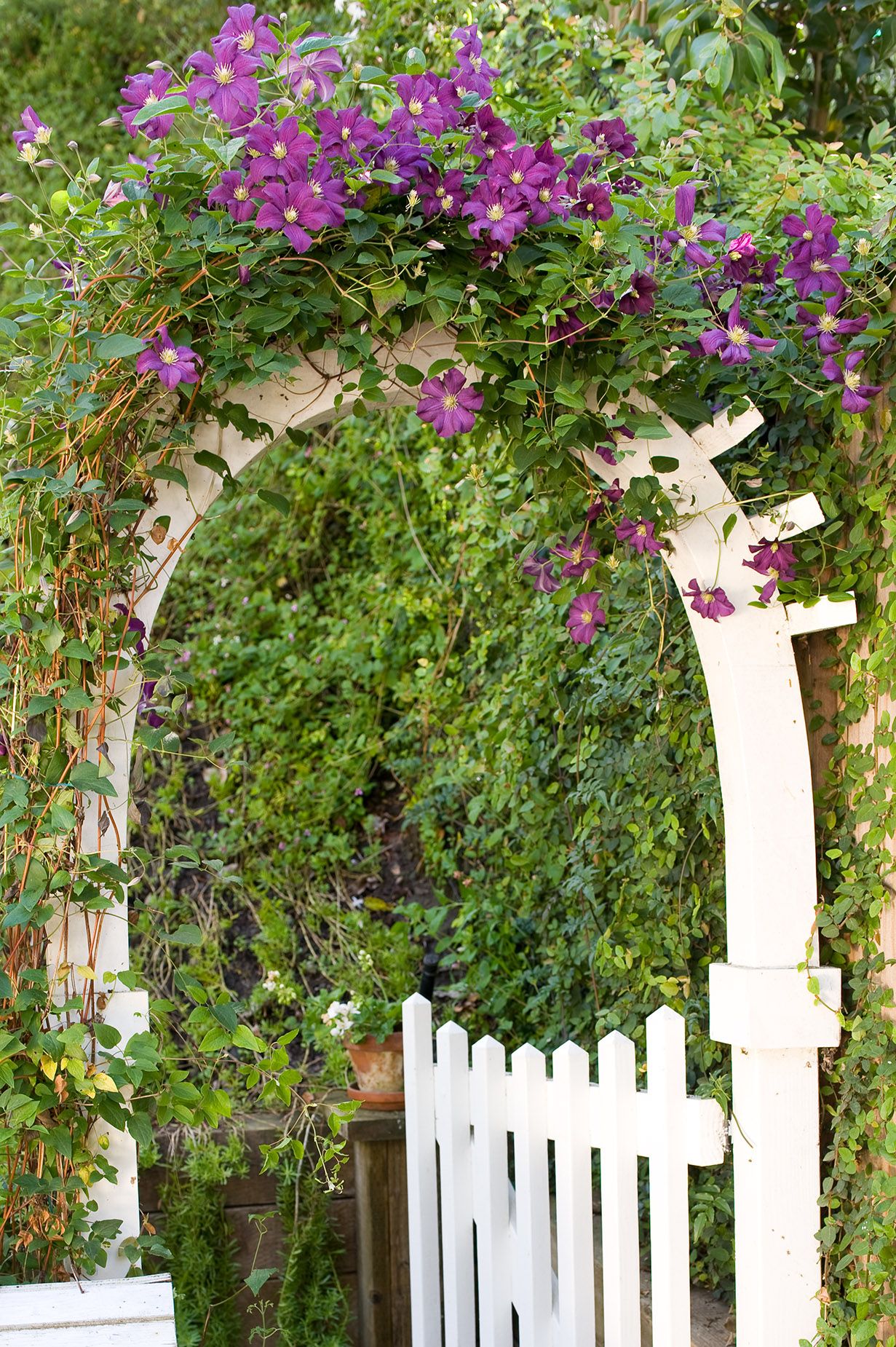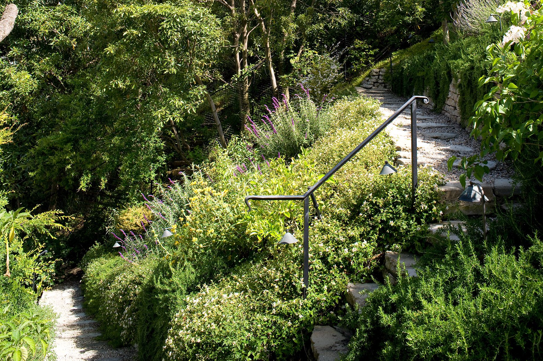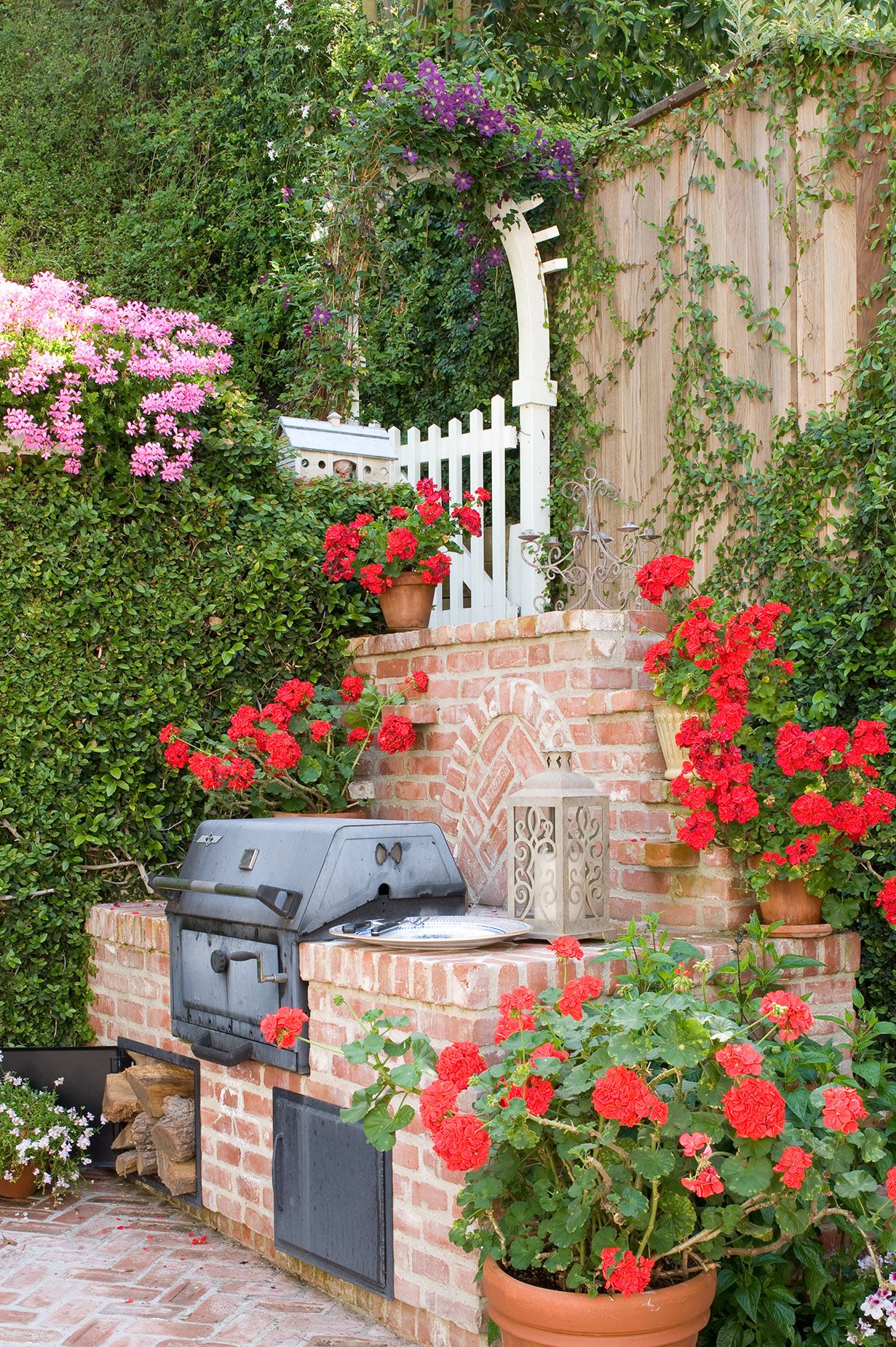 Modern and romantic garden with greenery and flowers in Beverly Hills